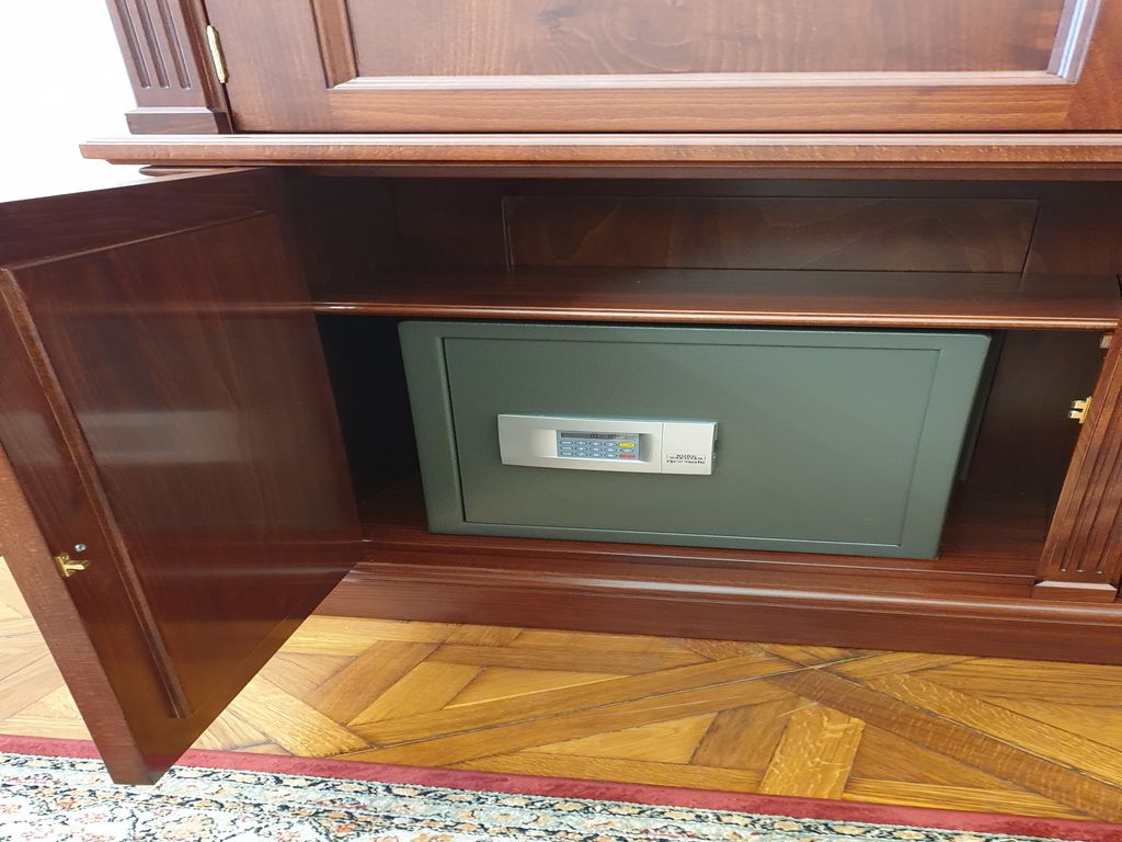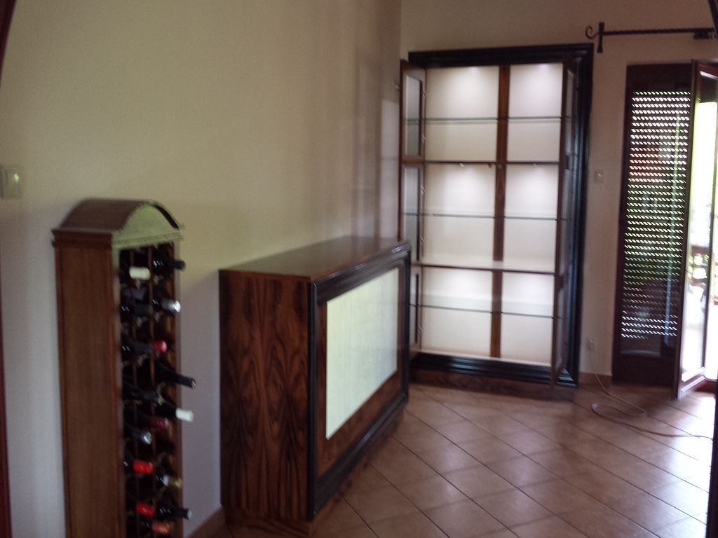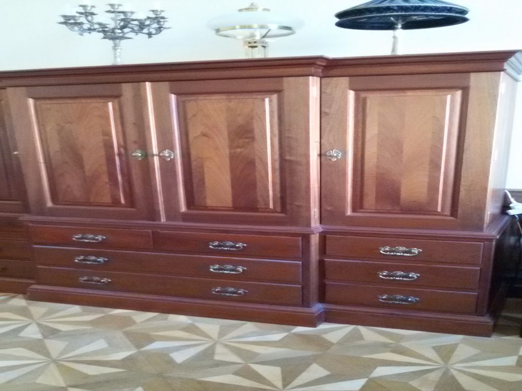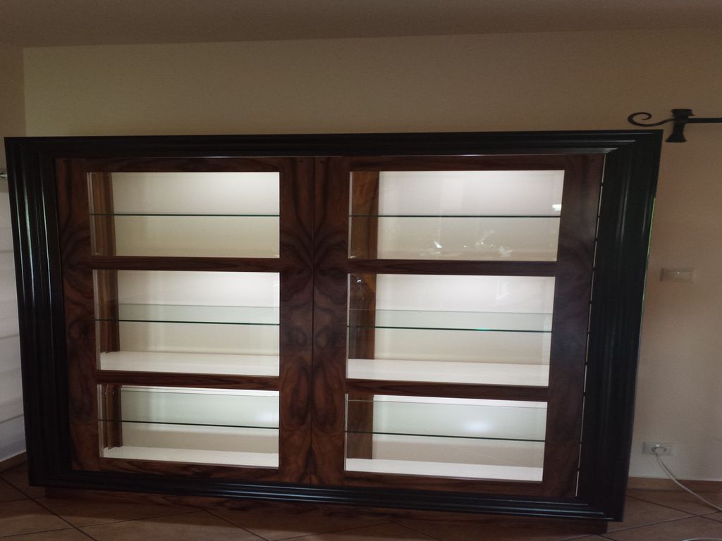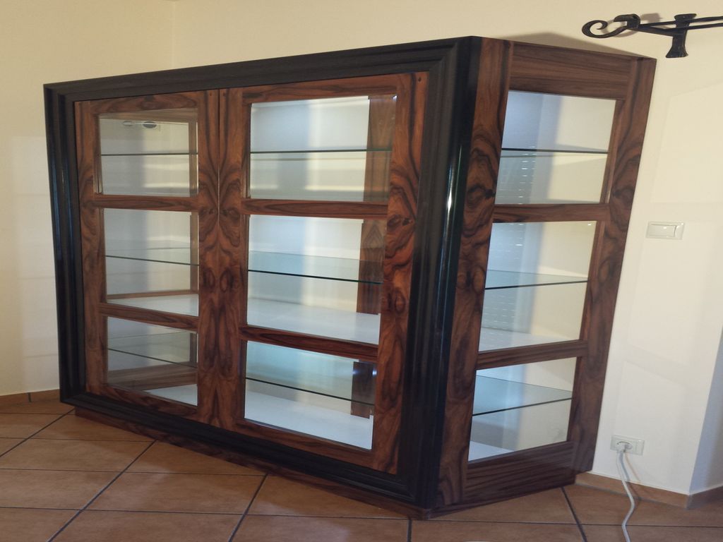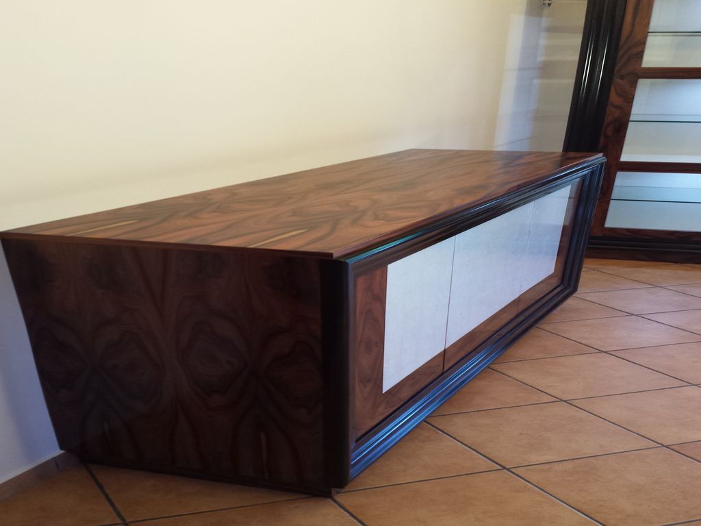 Paliszander furnérozású ezüst betétekkel díszített büfészekrény és vitrin